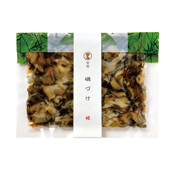 噛みごたえのある赤にし貝や、歯ざわりの良い茎わかめを薄切りにし、味付けした刻みくらげと千切り生姜をあわせ、独自の甘酢調味料で漬け込みました。