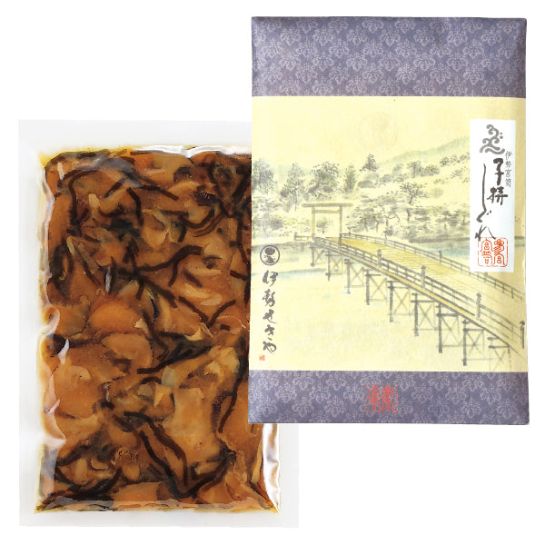 「子持しぐれ」は、磯の香り豊かな赤にし貝、昆布、魚卵を独特の製法で調味したもので、三つの味の旨みが調和した珍味です。その風流な味わいは、お酒によく、お茶漬けによく、料理の友として最高にお楽しみいただけます。