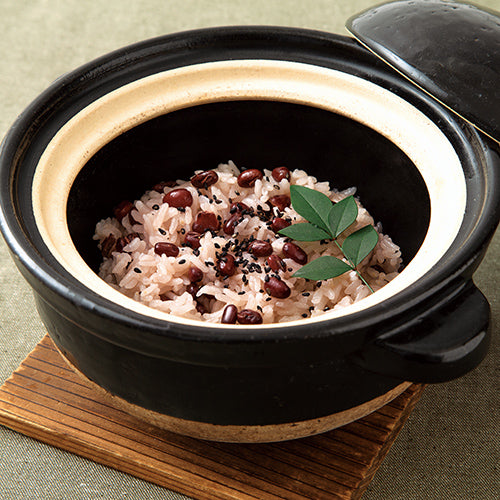 赤飯は、赤米を蒸したものが原形とされていますが、江戸後期の頃、小豆やささげ豆で炊き上げた桜色のご飯が「ハレ」の日の食事として広まり現代の赤飯となりました。