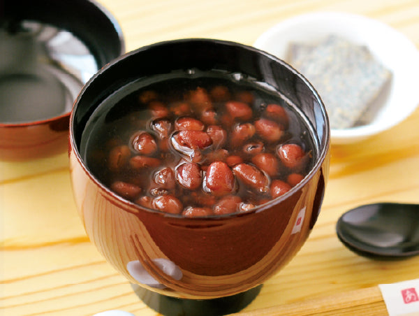 塩は赤穗の天然塩を、砂糖はザラメを用いて、小豆の粒がくずれないように特別な籠に入れ、時間をかけて煮上げてございます。
