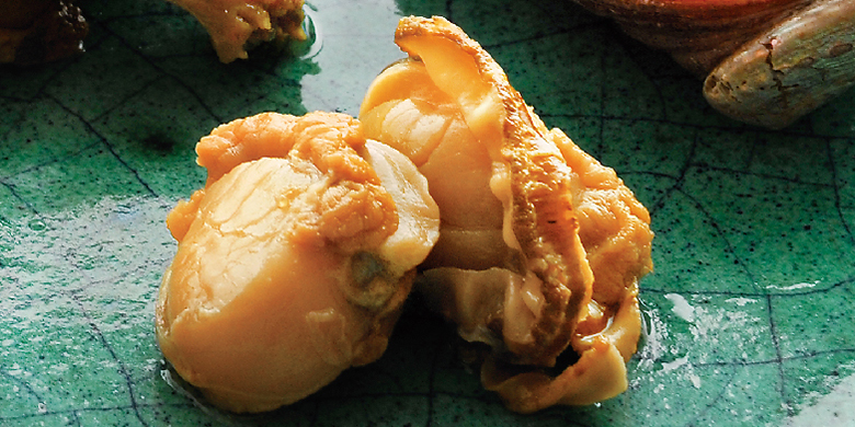 伊勢せきや自慢のたれと、脹煮の技で姿のままふっくらと柔らかく煮込んだ「一口あわび姿脹煮」と旨み豊かな帆立貝を脹煮製法でふっくら柔らかく煮含めた「帆立脹煮」の詰め合わせ。