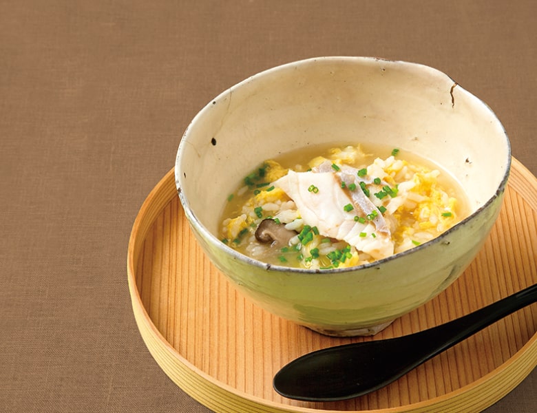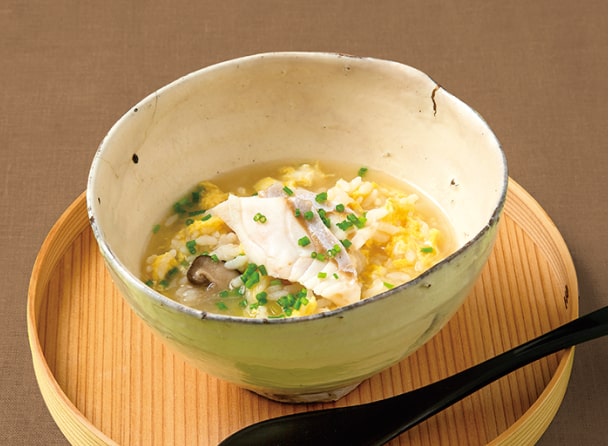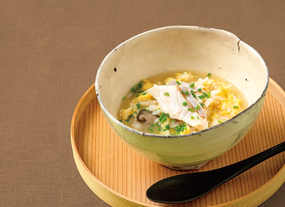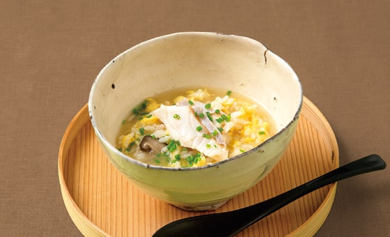 本品を火にかけ、ごはんを入れてとき卵を散らせば、アラや身から溶け出すコラーゲンたっぷりの濃厚出汁の雑炊に仕上がります。