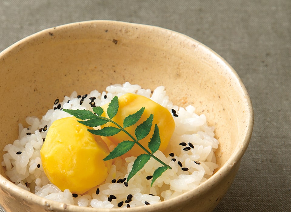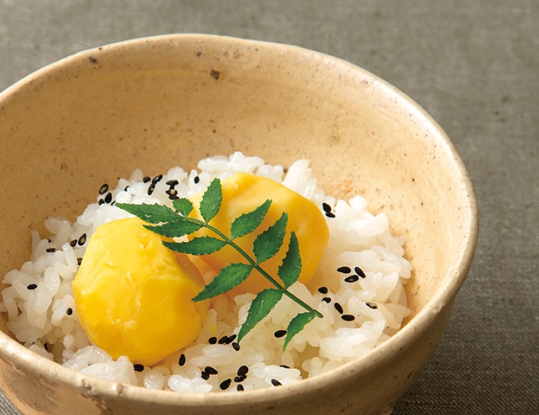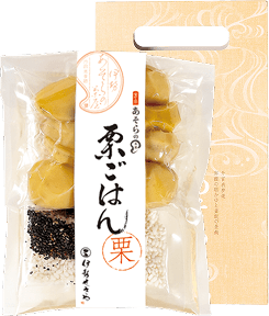 国産の栗をひとつずつ丹念に剥き、自然な美味しさを生かして仕上げました。添付のもち米とあわせてお召し上がりください。