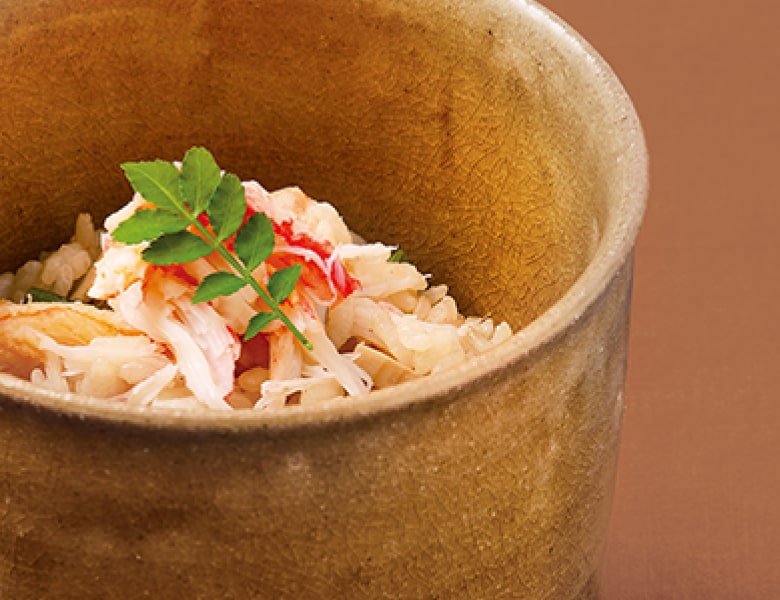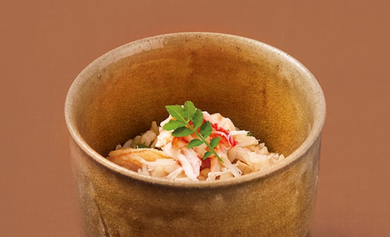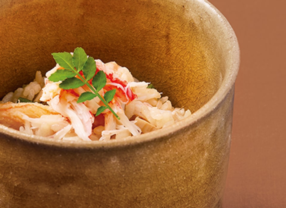 冬の味覚を代表する蟹。その中でも高級とされる本ずわい蟹をごはんの素に調製しました。蟹みそをしのばせた特製の濃厚な蟹出汁で炊き上げ、豊かな香りと旨みをご堪能ください。