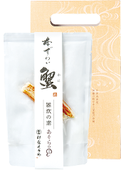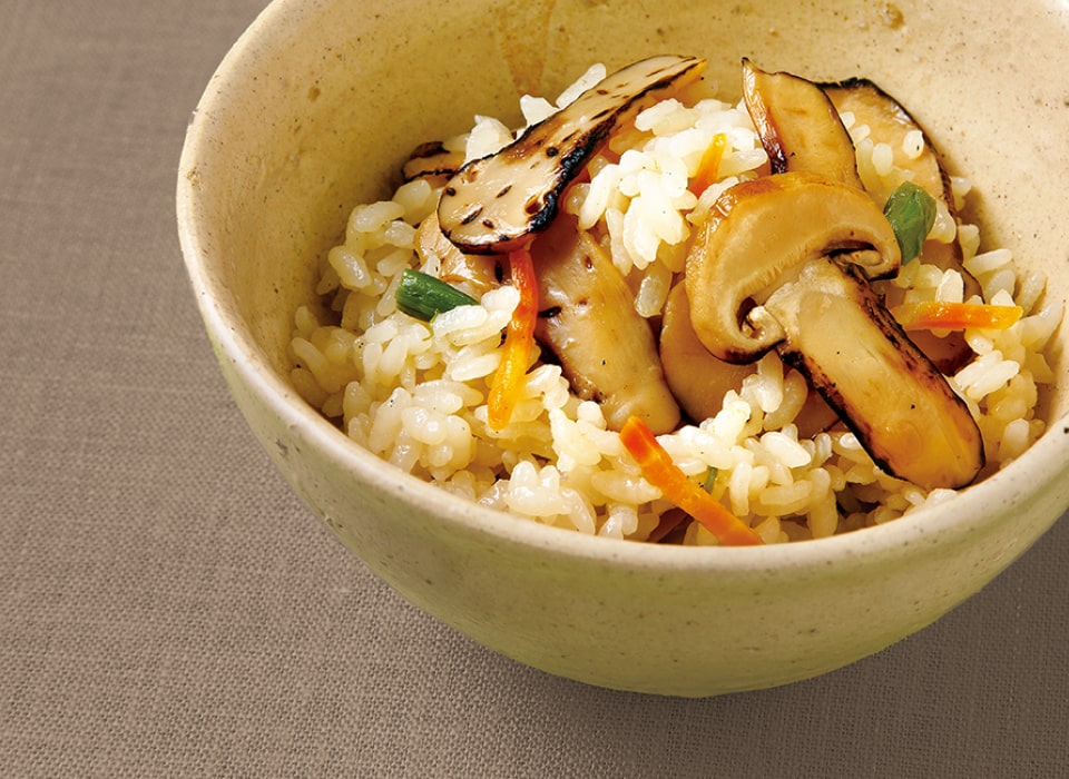 秋を代表する山の幸、松茸を炙り、スライスしてごはんの素に調製いたしました。香味と食感とともに季節をお楽しみください。
