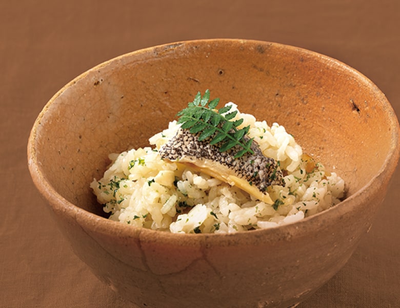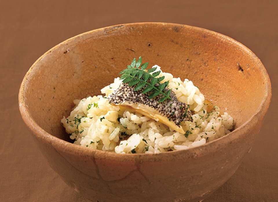 旨みやコラーゲンをたっぷり含んだ白身と、アラや身から溶け出す濃厚な出汁で炊く、とっておきの炊き込みごはんをお楽しみください。